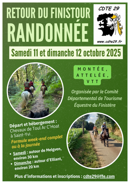 De ses côtes granitiques à ses forêts mystérieuses, vous découvrirez en toutes saisons une région authentique au gré des pas de vos chevaux. Vous arpenterez les landes de bruyères et d'ajoncs des Monts d'Arrée, des montagnes noires et du Ménez hom, goûterez la profondeur des chemins creux, vous suivrez le canal, une voie verte, ferez une halte dans un joli port ou un petit village authentique, et saisirez ainsi toute la richesse d'un patrimoine naturel et culturel préservé !