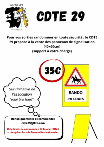 Envoyez nous votre texte d'annonce par mail à communication.cdte29@cdte.ffe.com et nous le publierons ici.